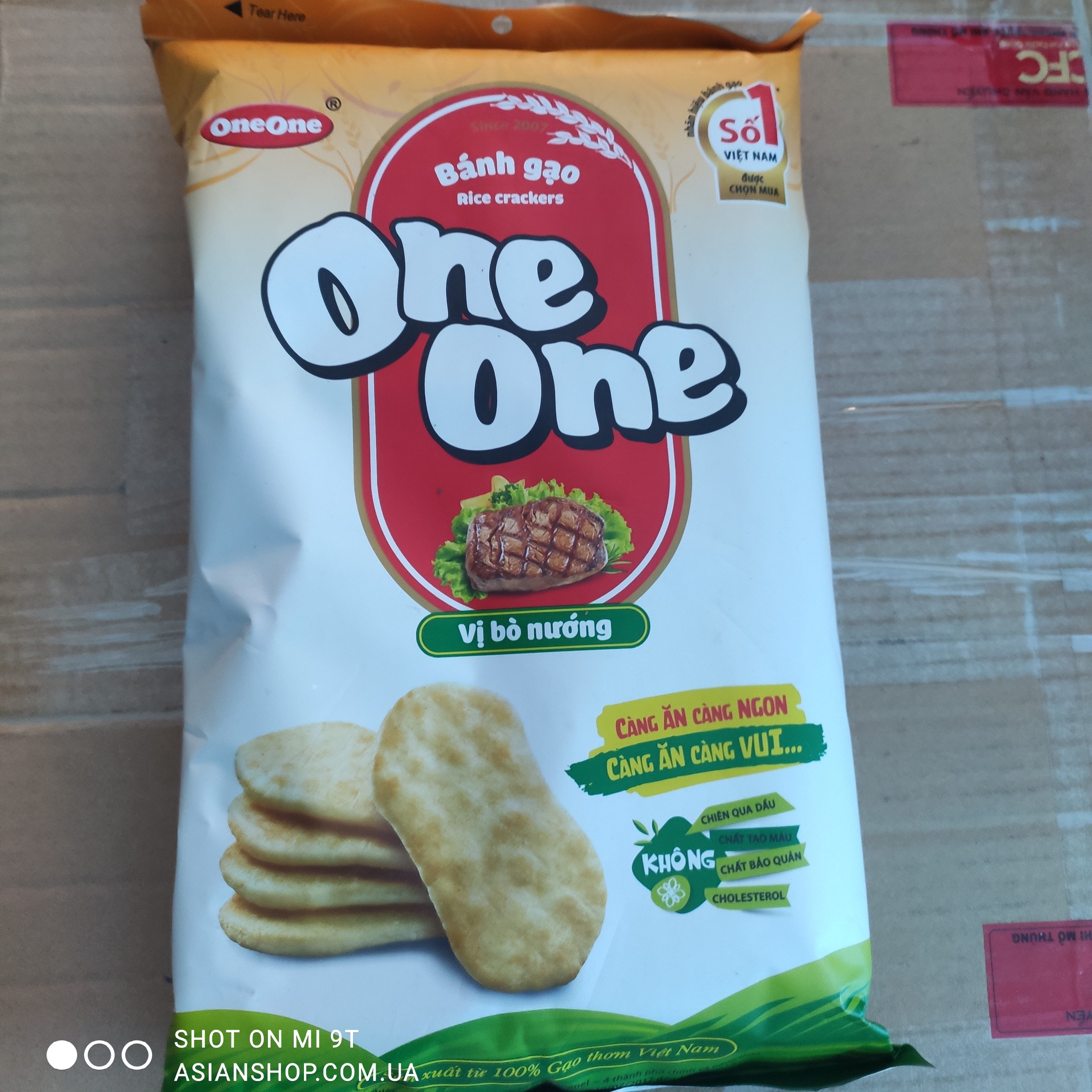 Рисовое печенье One-One (длинное), 150г. (Вьетнам).Рисовое печенье - излюбленное лакомство в Азии - своей историей уходит далеко в прошлое. В древних восточных странах из риса (рисовой муки) пекли даже обычных хлеб. Классическим сочетанием в то время считалось: рис и кокосовое молоко. Прошло много лет, а традиционные рецепты рисовых сладостей остались неизменными. Рисовое печенье Оne-One приготовлено с добавлением соевого соуса и специй и обжарено до аппетитной золотистой корочки.